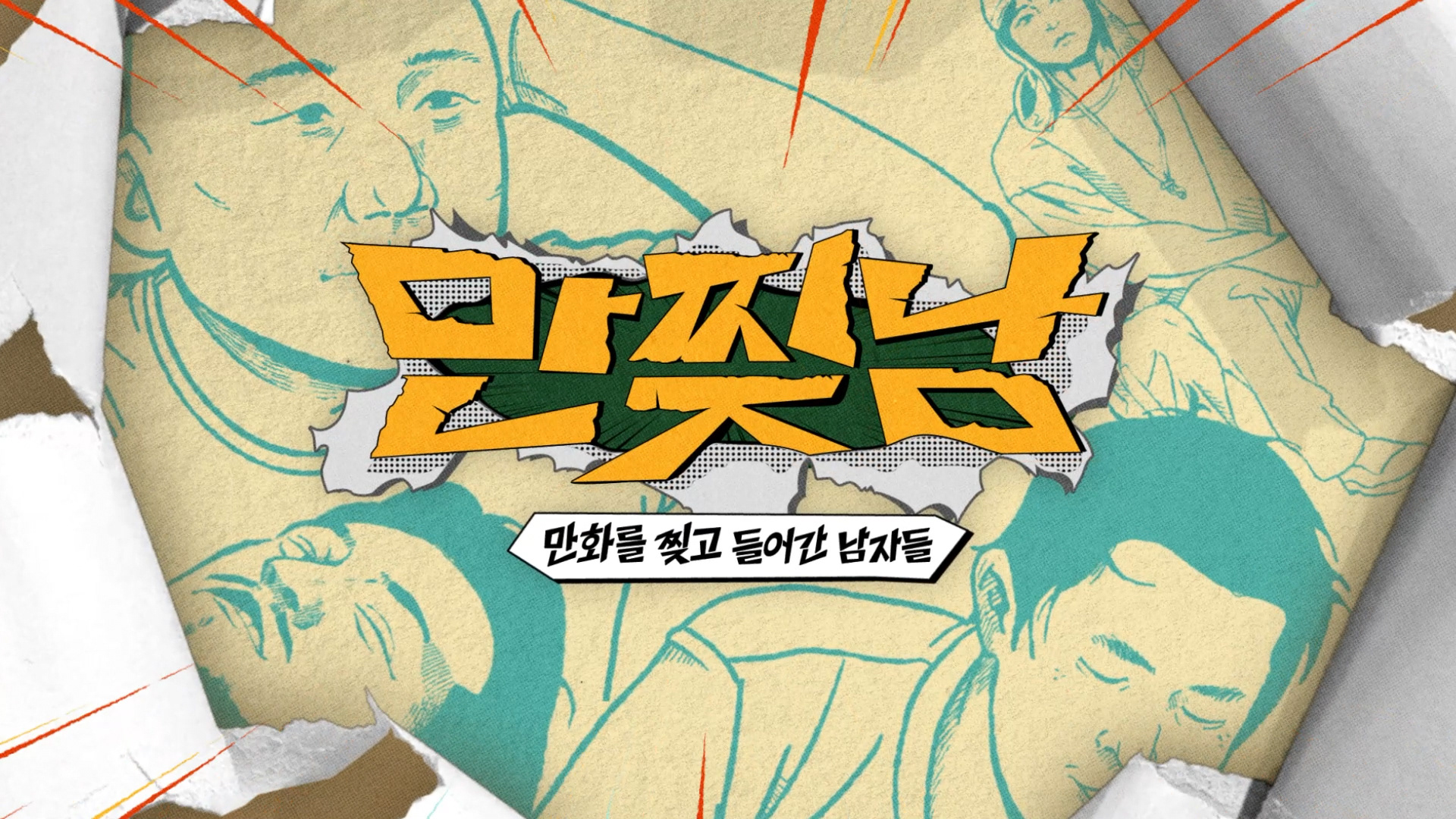 TVING에서 방영된 '만찢남'의 오프닝과 그래픽 패키지를 제작했습니다. 만화 작가 3명이 무인도에서 펼치는 생존 스토리를 담은 예능 프로그램으로 그들의 직업에 걸맞는 만화적 기법으로 표현했습니다.